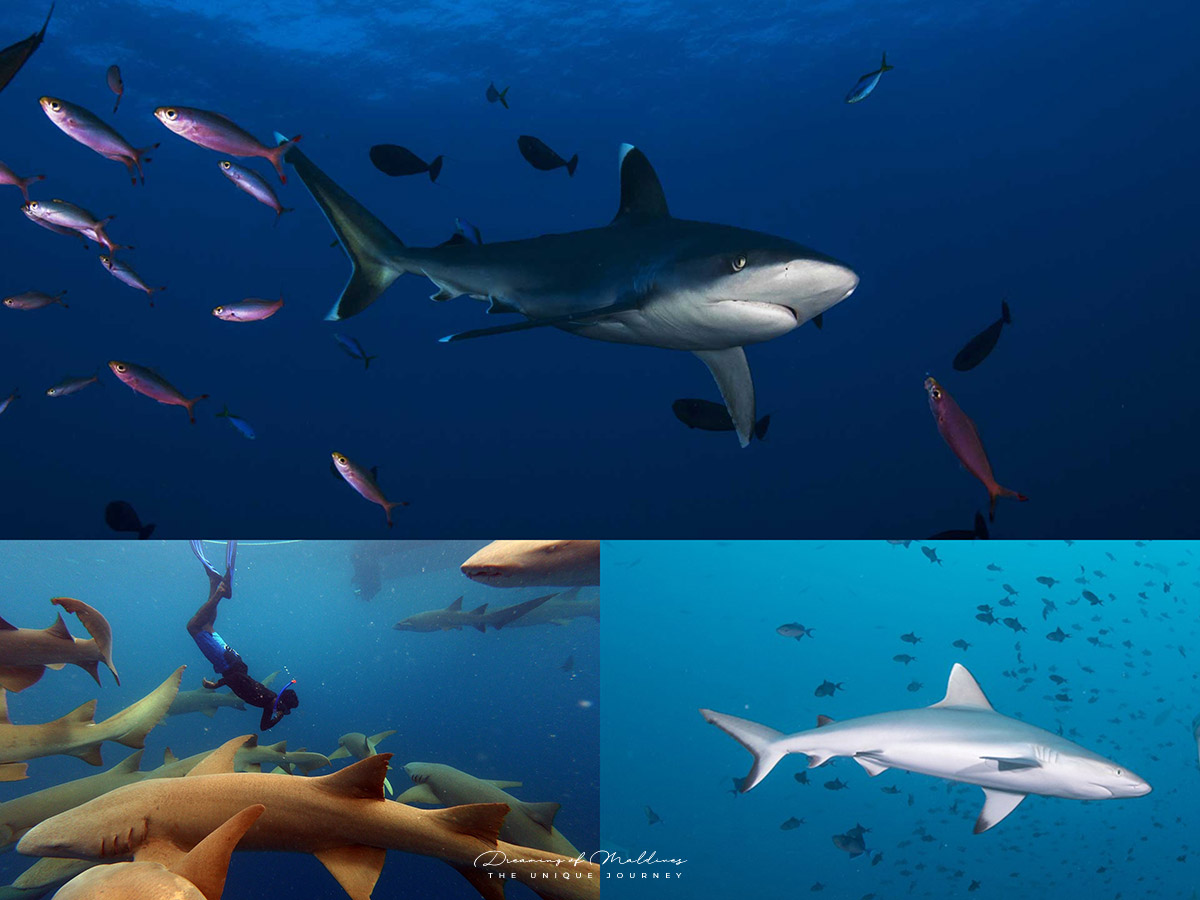 The blacktip and whitetip reef sharks are the two most common shark species found in the Maldives.